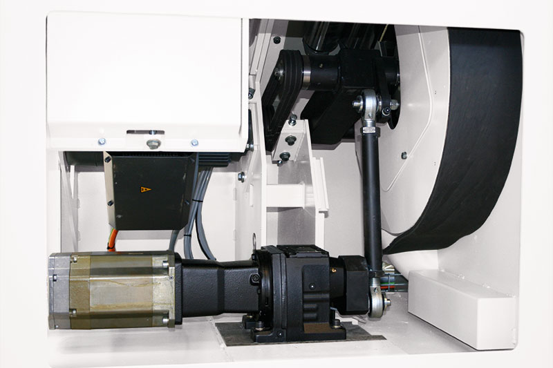 The optimizing cross-cut saw is manufactured in a particularly durable fashion with mechanical components of extremely high quality. In order to achieve the accuracy and capacity required in large workpiece dimensions, the saw is equipped with 6 servo driven bottom rollers and 6 pneumatically activated pressure rollers. Both the driven and the pressure rollers are double supported, to ensure maximum contact to the processed workpieces.