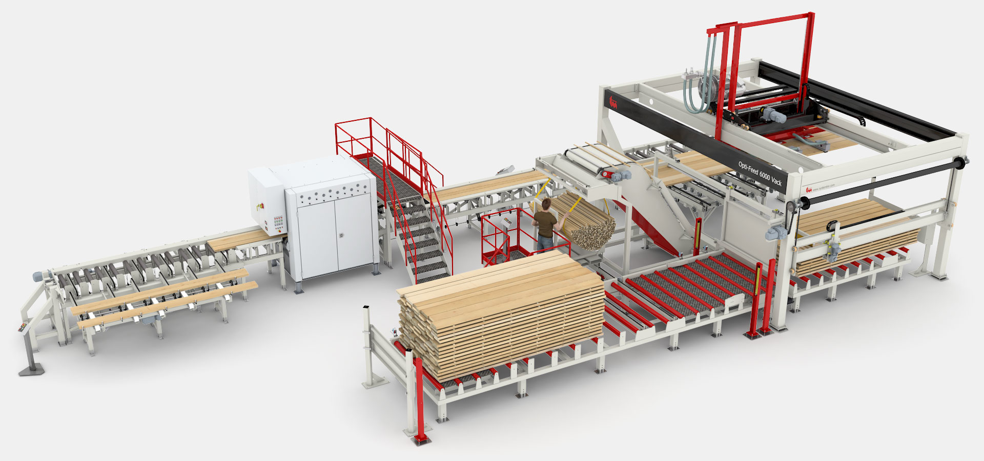 Giguère & Morin Inc. is focused on remaining in the vanguard of their field by offering value-added high quality wood products. The purpose of their investments in new equipment is to increase the production capacity as well as the product quality. One of the recent investments is an automatic vacuum infeed Opti-Feed 6000 Vack, batch feeder and planer outfeed from System TM. This infeed solution will automate the entire infeed process to a planer and ripsaw.