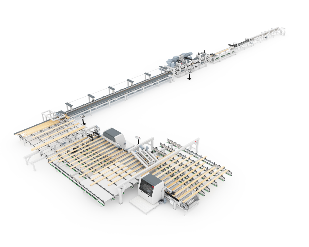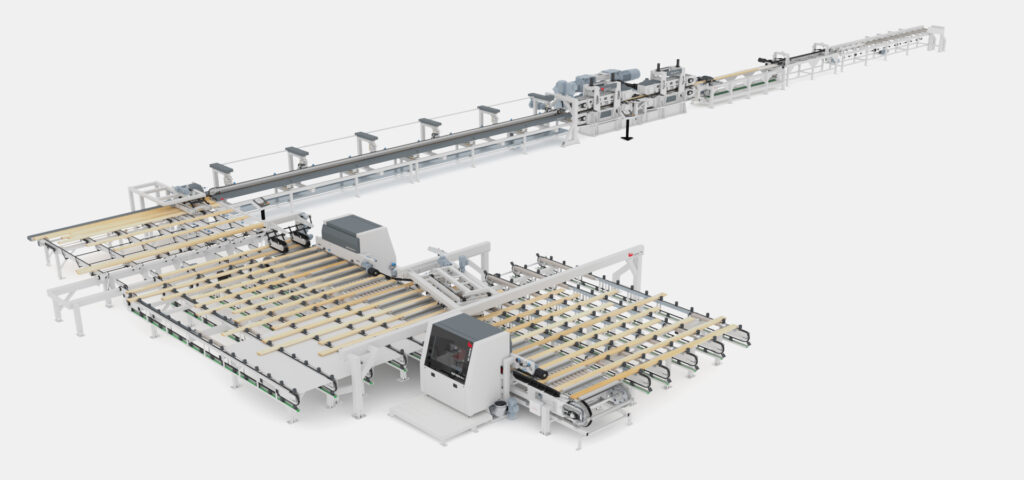 System TM’s contribution to this cutting-edge manufacturing facility features our Opti-Feed H-L horizontal finger-jointer for long length workpieces. The line is also equipped with our Opti-Feed automatic feeding system.