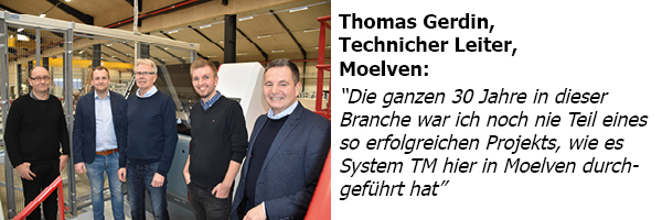 Nachdem Moelven von der Sicherheitsbehörde aufgefordert wurde, die Sicherheitsbedingungen zu verbessern, vertraute das Unternehmen auf System TM und beobachtete, wie seine langsam laufende, arbeitsintensive Linie zu einer schnelllebigen, optimierten Opti-Kap 5103-Kappanlage wurde. Moelven kam mit hoher Arbeitssicherheit und exzellenter Holznutzung besser und stärker aus seiner Krise hervor.