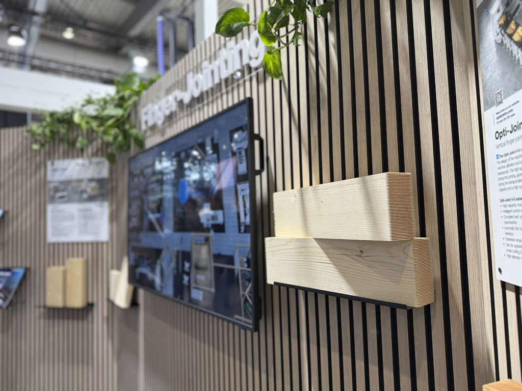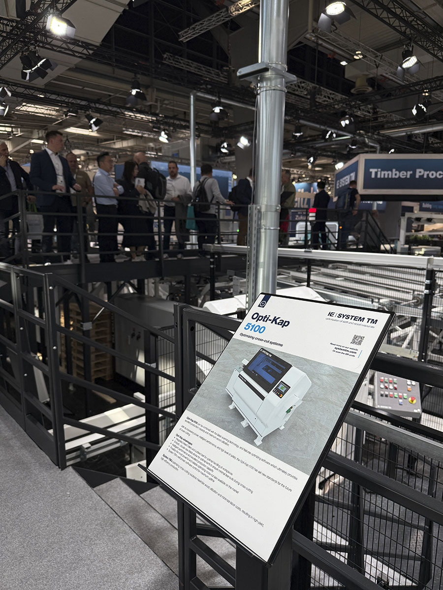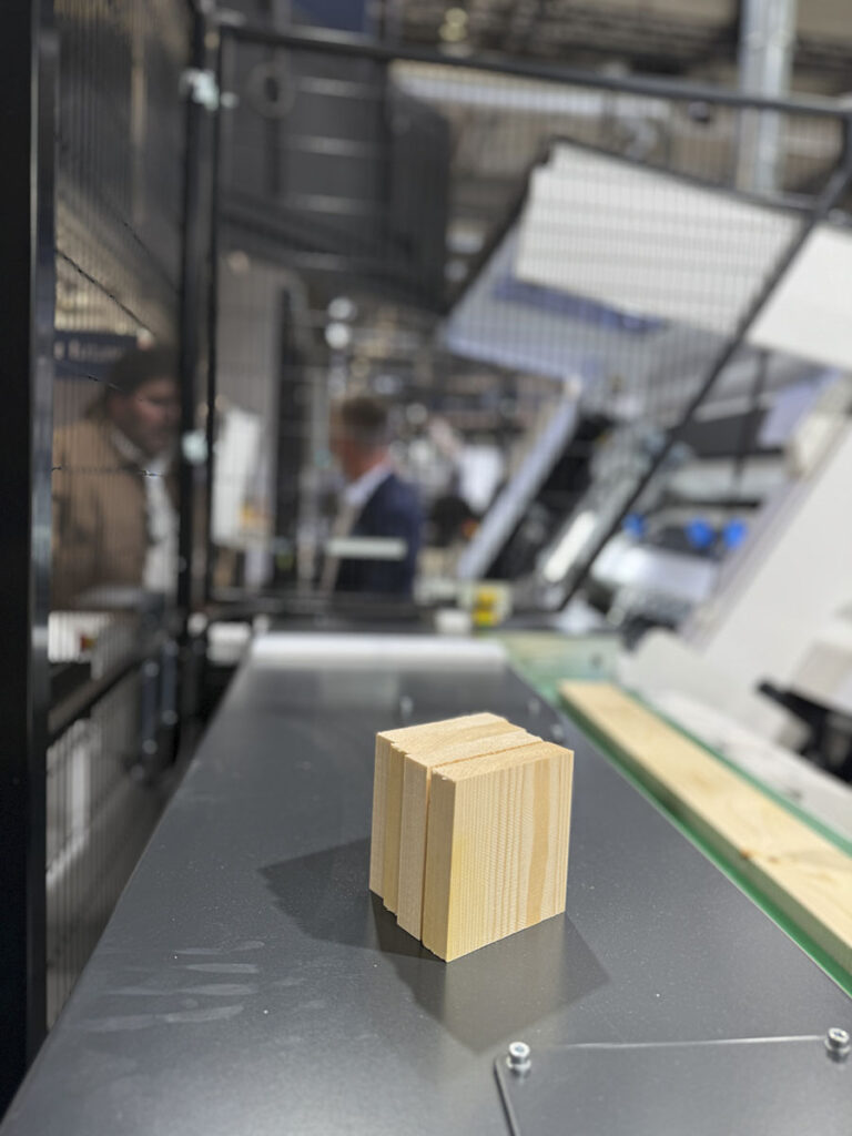 In addition, a second compact cross-cutting solution featuring a Goldeneye scanner with an X-ray module and laser technology highlighted the full potential of AI-powered scanning when paired with the Opti-Kap 5100’s high cross-cutting capacity. This setup demonstrated exceptional wood utilization at high speeds, leaving trade fair visitors awestruck.
