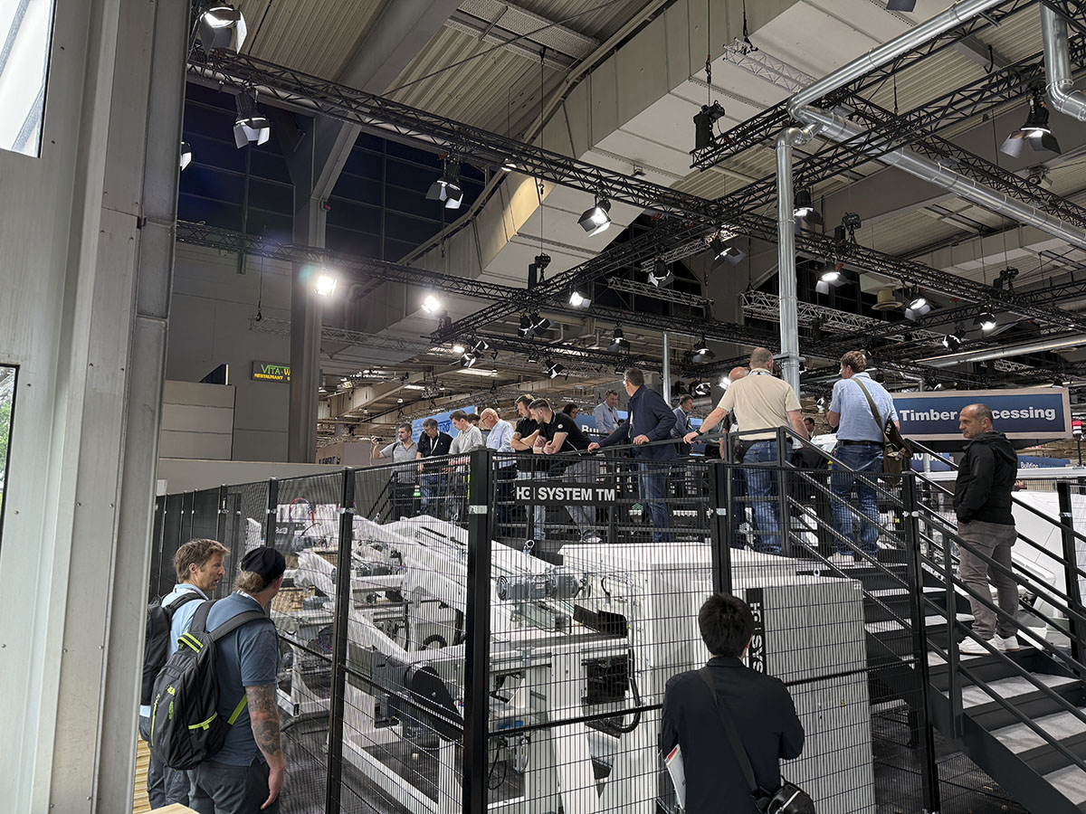 The showstopper at the heart of our exhibit was a fully automated timber processing line featuring: