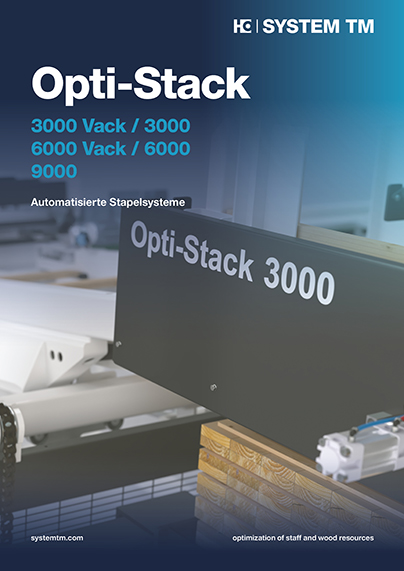 Die Opti-Stack 6000 Vack ist eine Vakuum-Stapelanlage, die Werkstücke ganz oder in Teillagen in richtiger Reihenfolge von verschiedenen Hauptmaschinen wie Kappsägen, Hobeln, Doppelzapfern, Bandsägen und Schleif-maschinen stapeln kann.
