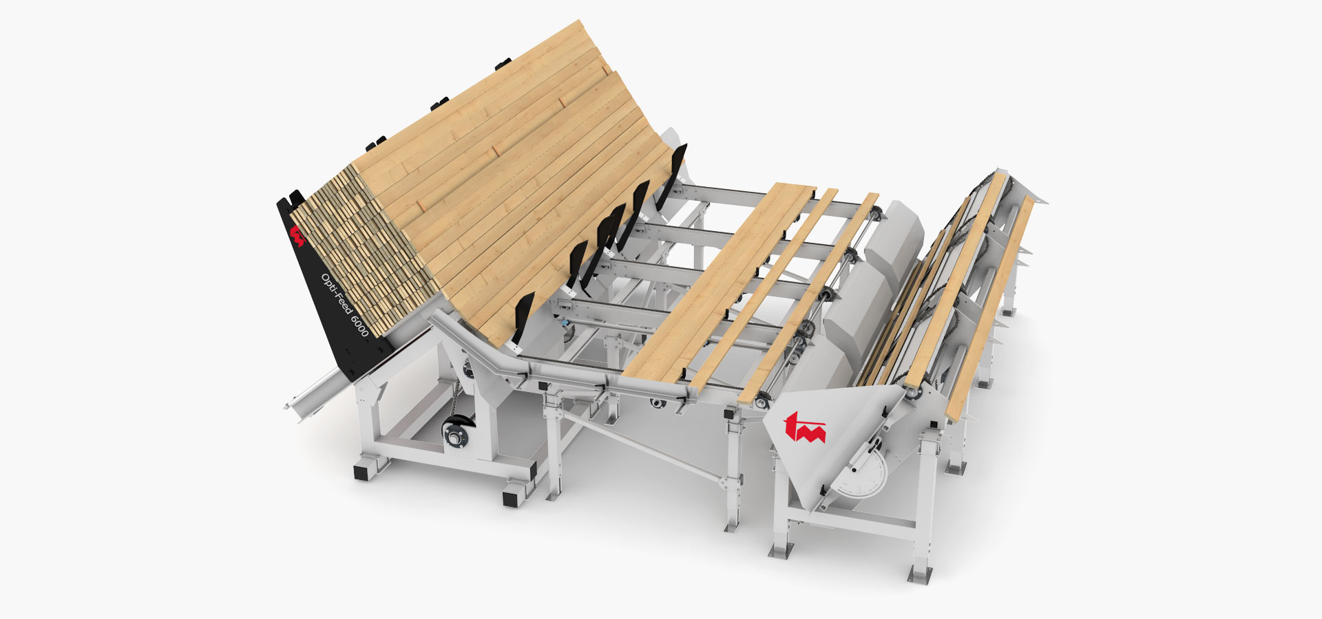 Opti-Feed 6000 is suitable for feeding long workpieces from 1,200 – 6,100 mm (4’- 20’) at a high capacity by uniform lengths and widths.